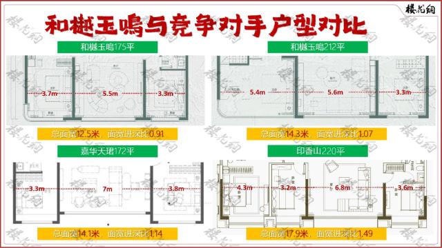 嘉华天珺与其同面积排名嘉华。 172 平房型,总开间 17.9 米,开间金针比 1.49。