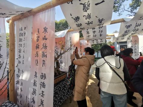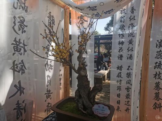 来自15个城市和20多个参展商的盆景布置在凝香道、历史遗迹区、中国梅花博物馆和北园,在古诗词字画的背景下更加优雅。流连忘返的游客高阿姨问工作人员展览的结束时间。听说3月25日结束很安心。
