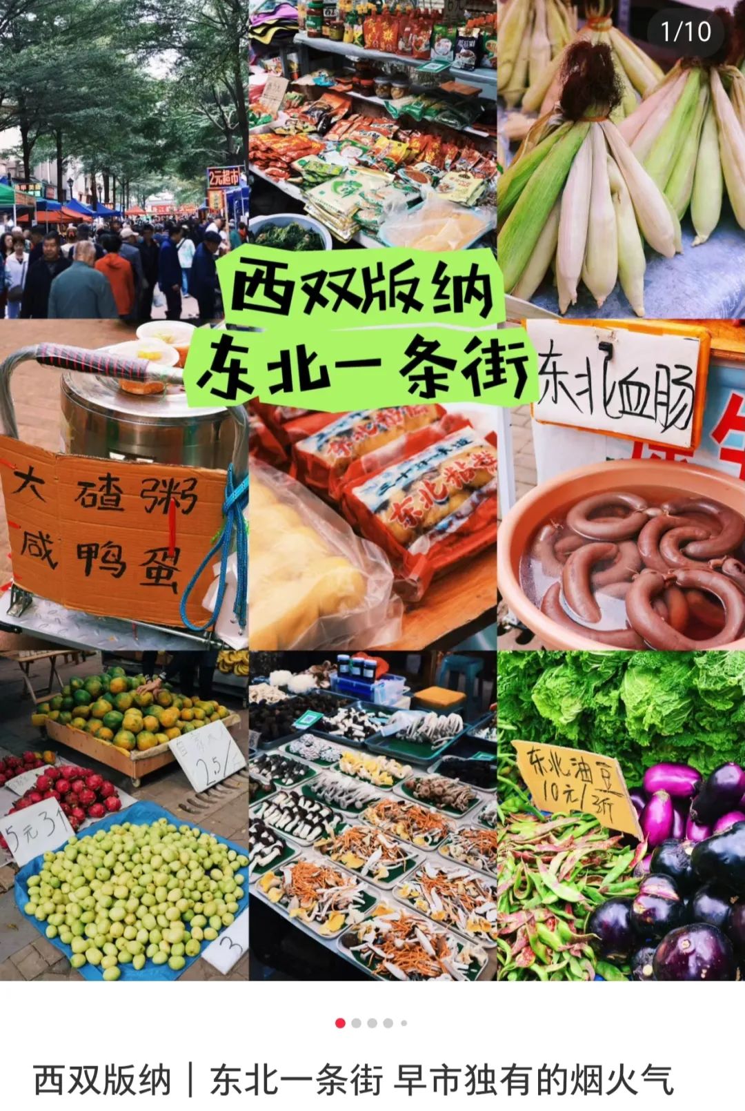 景洪市东北一条街(已拆除)更像是东北空运的大集,在这里你可以吃到最正宗的酸菜血肠,冻梨烤串。