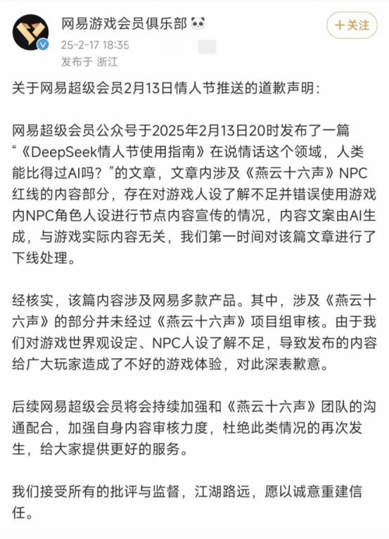 情人节那天,网易游戏发表了一篇文章。 AI 产生的推文也遭到了玩家的痛苦 「冲塔」。