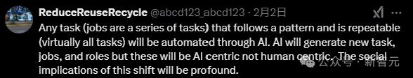 网民们认为,大多数工作实际上是由重复的任务组成的,几乎所有这些任务都可以被AI所取代。虽然AI可能会创造一个新的职位,但是这些新的职位往往以AI为核心,其社会效应将是长期而不可预测的。