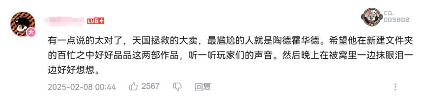 但是,在玩家之间,我们经常可以看到这样的评论:“走陶德叔叔的路,让陶德走投无路”,“如果老滚6连《天国救援2》的水平都没有,就会被钉上耻辱柱。”“如果没有那个游戏,今年应该是年度。”