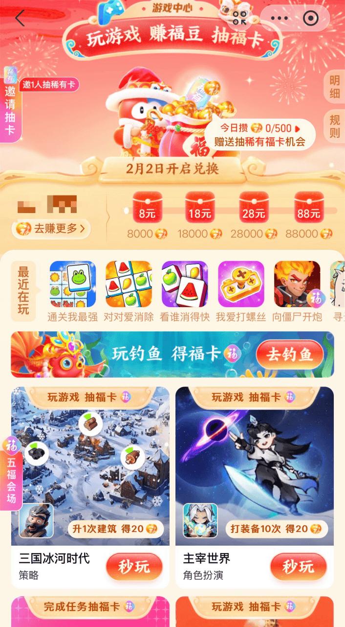 新年抽福卡的次数有限。玩小游戏可以积累福豆,获得更多的抽卡机会。简而言之,它是无聊的。收集福利的第一天,能不能中卡并不重要。他的支付宝界面逐渐被游戏压垮。