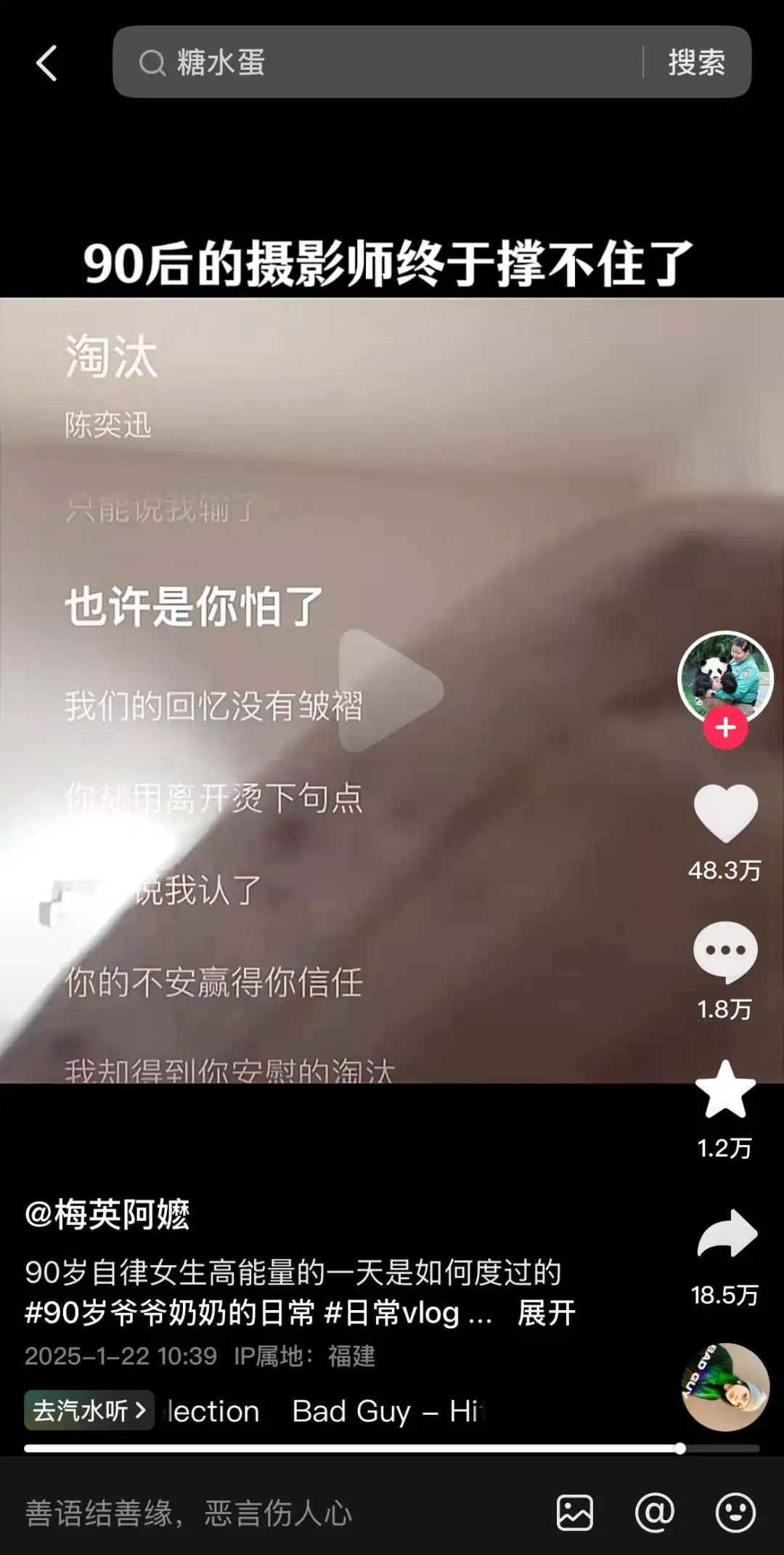 “梅英阿嬷”出现后,一些中老年博主似乎发现了流量密码,并开始学习“梅英阿嬷”的编辑方法。《bad guy》在配乐上,拍摄同一段高能老人的一天。