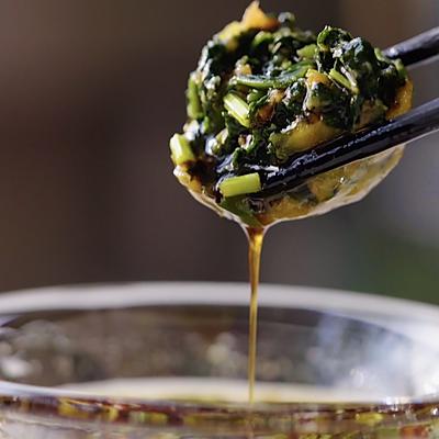 1、蔬菜(菠菜) / 荠菜 / 蒿菜杆)摘洗干净,整棵树放入沸水中烫软变色,不必等待再次烧开,不必全熟,立即捞出控干水分。