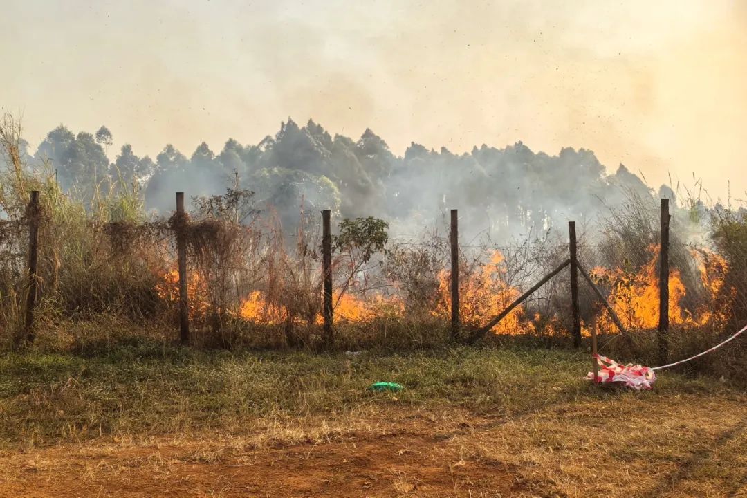 东非原油管道工程周边,由于村民焚烧田内杂草,火势迅速蔓延,对工程仓库构成严重威胁。