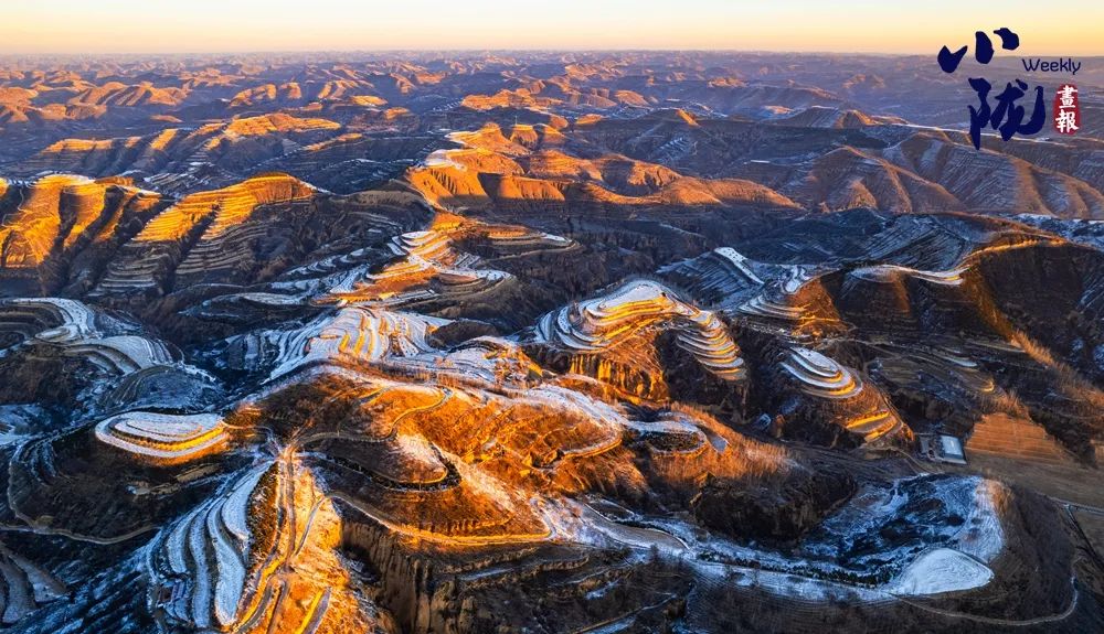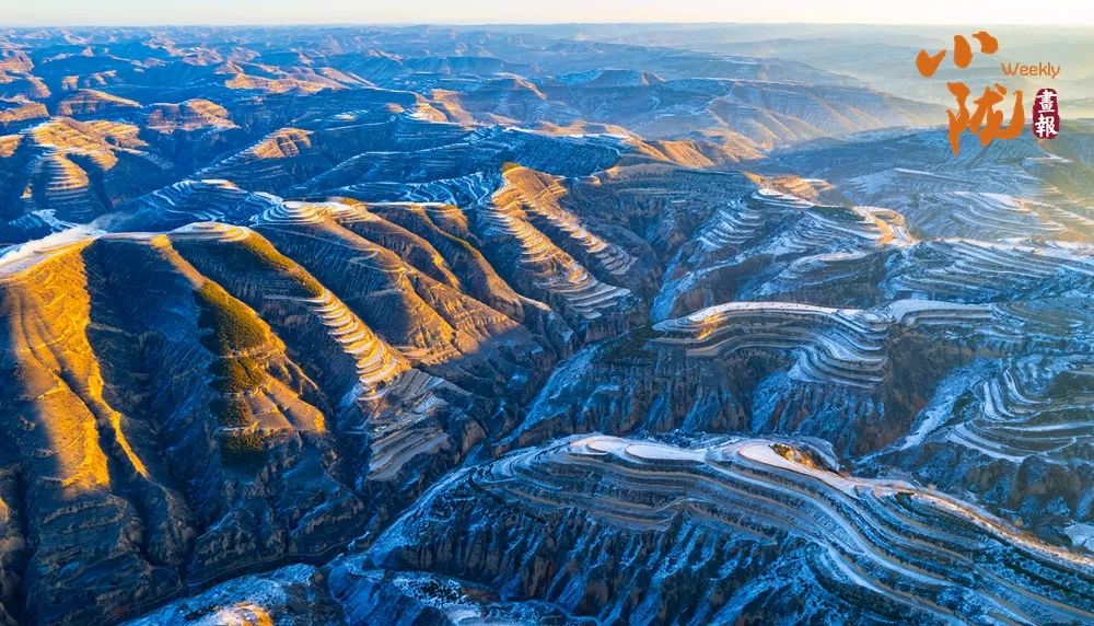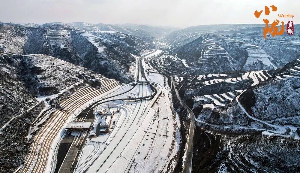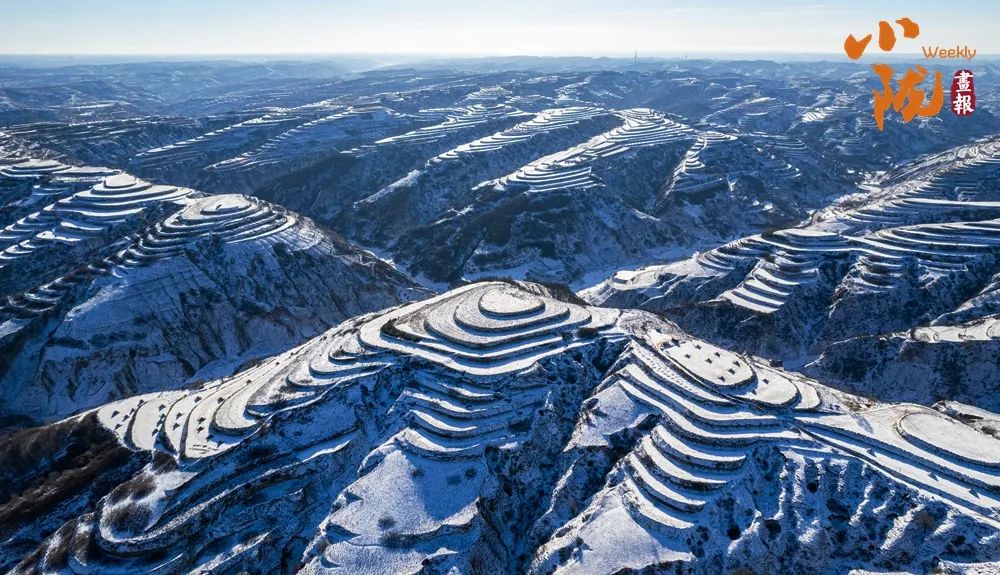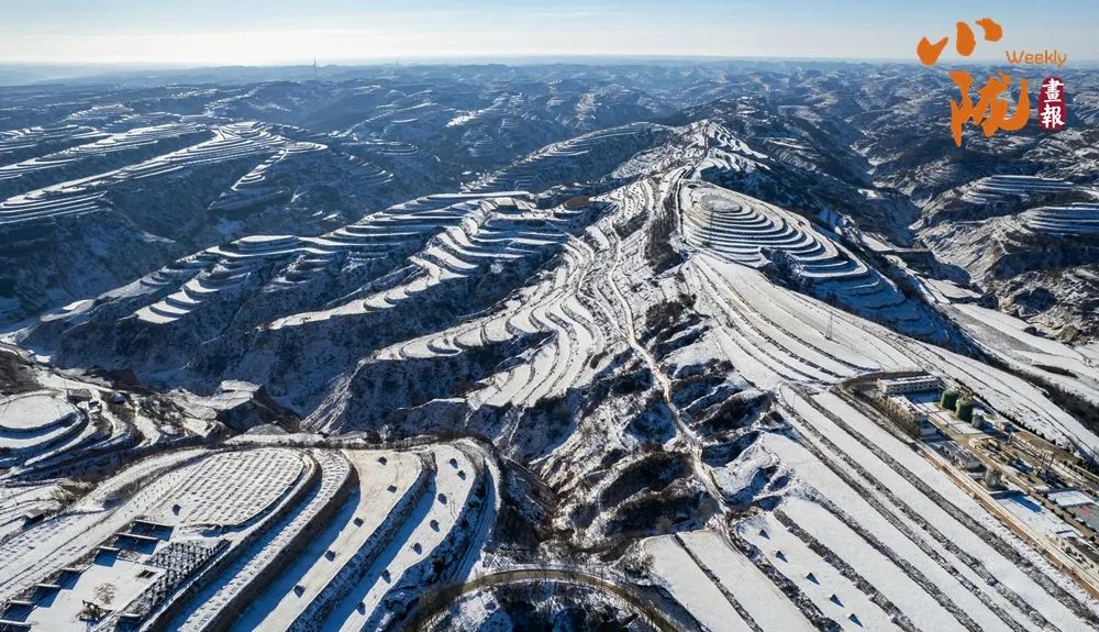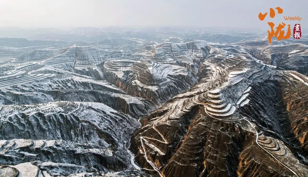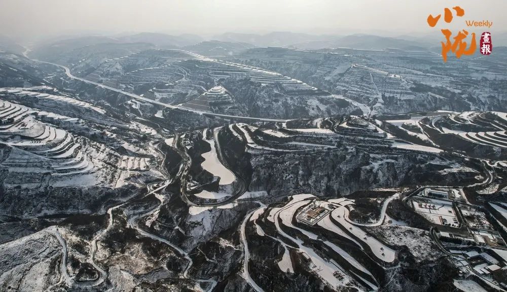 雪地里的黄土沿线,就像用银白色的画笔,一一描绘了高原上的梯田、山梁和道路。