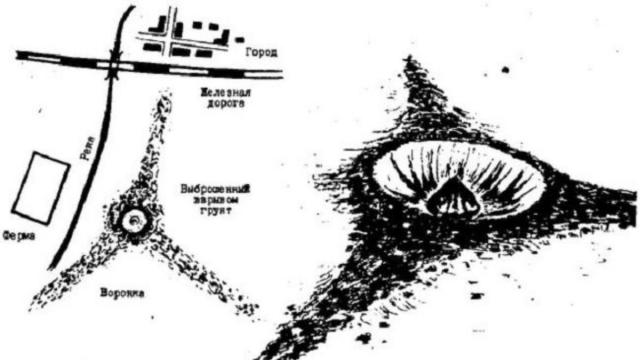 有一天,在这样的散步中,他偶然发现了一个奇怪的陨石坑。这些陨石坑位于树林中,靠近一条小路。他仔细观察:这些坑是三个整齐的锥形坑,直径从 1 米到 2 米不等。