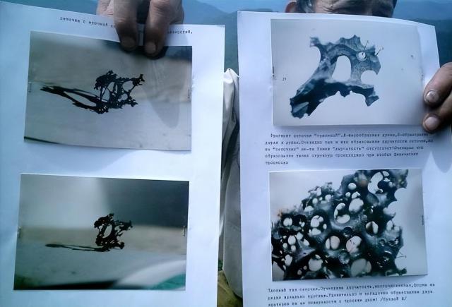 三天后,一组由瓦列里里组成。 · 德夫日尔宁(Valery Dvuzhilny)领导的 UFO 学者们前往山丘进行调查。她们在现场发现了一个 2 × 2 大米区,表面有高温影响的痕迹。这个地区的岩层表面覆盖着一层黑色的薄膜,路面也覆盖着黑色的灰烬。