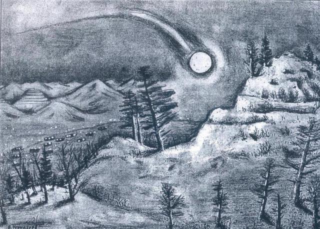 1986 年 1 月 29 日夜里 19:达尔尼戈尔斯克的居民目睹了一个不明飞行物——一个发光的红色球在夜空中出现。这个物体大约每秒钟。 15 米速平行路面航行,最终撞上石灰山,即 611 号码高地。撞击之后,事故现场持续了一个小时,空气中可以看到类似大火的光辉。