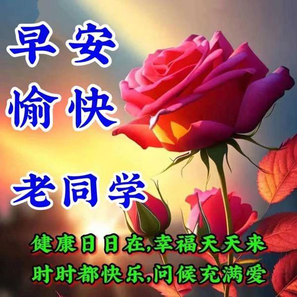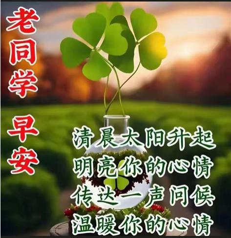 一束阳光带来光明,一缕微风带来舒适;一句问候传递关怀,一句祝福倾诉关怀;一个微笑带走了烦恼,一条短信带来了温暖;一句话问候早上好,轻轻一按,送去快乐。老同学,祝你新的一天心情愉快,万事如意!