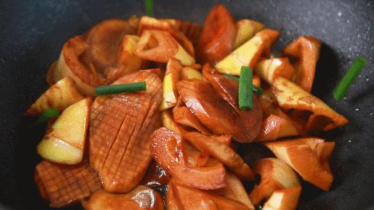 春笋 2 个杏鲍菇 2 个油 10g 大蒜 10g 老抽 10g 生抽 10g 盐 1g 糖 1g 葱段 适当