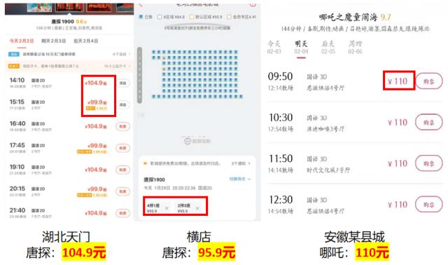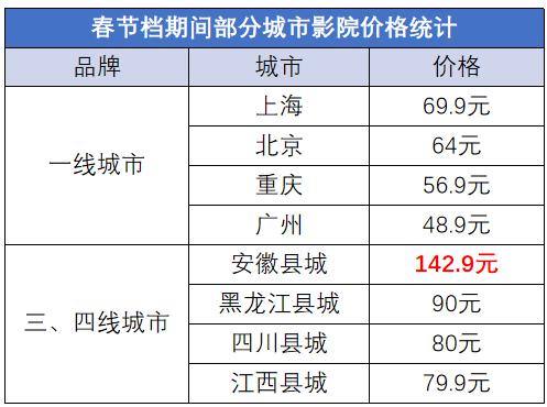 春节期间,一些三四线城市和县城的电影票价已达到 80 元— 100 块的水准