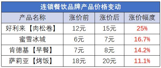 不只是肯德基,其他连锁餐饮品牌也紧跟涨价步伐。