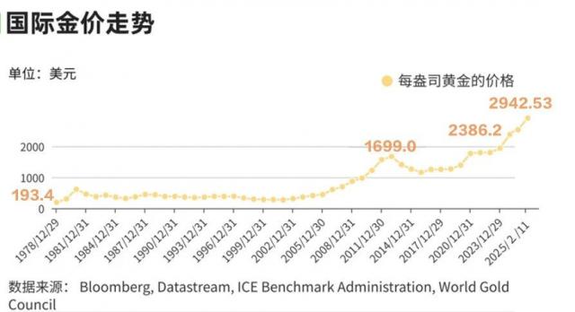 在 2025 年 2 月 11 日本,黄金价格达到历史高点。 2942.53 美金 / 盎司
