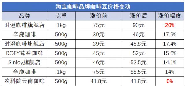 这两个项目占咖啡品牌成本的一半,成本的增加最终直观地体现在咖啡的价格上。