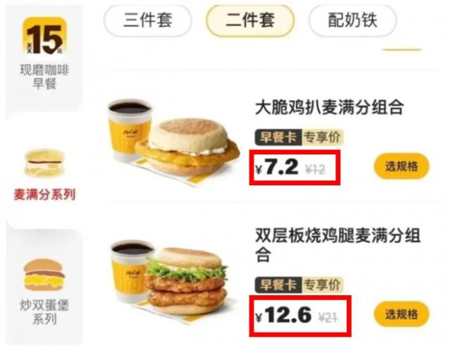 就外卖小程序而言,如猪柳蛋麦满分套餐、原味板烧鸡腿麦满分套餐等,价格均有所上涨。