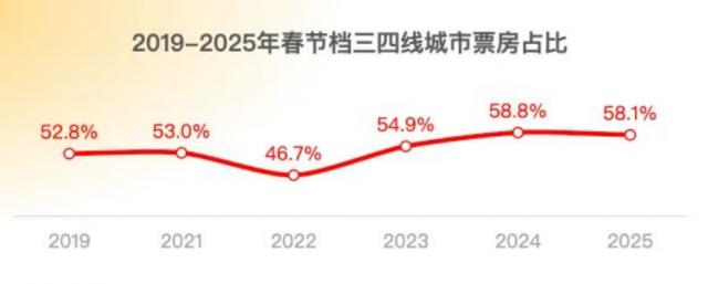 回放 2025 全年春节档票房,三四线城市票房比例也达到了 58.1%