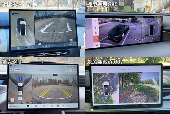 就影像辅助系统而言,四款车都配备了 360 ° 全景影像系统,整体画质清晰,车辆周围畸变控制合理。此外,四款车的影像系统都配备了可随动转向的倒车辅助线,实用性令人满意。