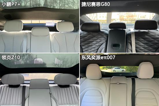在车内舒适性方面,四款车的后座都配有三个头枕。然而,只有捷尼赛思 G80 中间头枕支持上下调节。此外,三款车后座两侧头枕支持上下调节,中间头枕不支持调节,面积小,会对中间乘客的乘坐舒适度产生一定的影响。