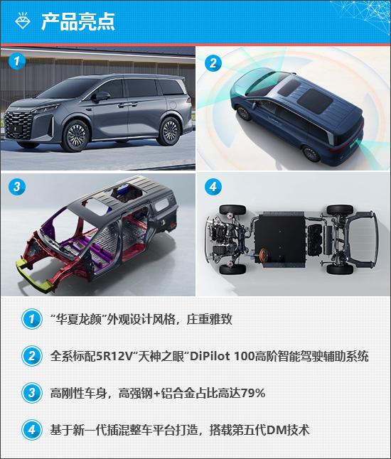 全系统新车标配 5R12V “天神之眼” DiPilot 100 先进的智能驾驶辅助系统,整车共同配置 29 一种高精度传感器,包括 5 高精度毫米波雷达,12 一个超声雷达和 12 一个高清摄像头。通过协调这些传感器,可以准确地感知车辆周围的环境,包括道路、车辆、行人等,为实现驾驶辅助功能提供了坚实的基础。