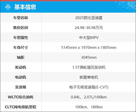 2025 年 1 月 8 日本,比亚迪夏正式上市,共同推出。 4 款车,售价 24.98-30.98 万元。与此同时,官方还推出了购车权益,如焕新优惠、金融优惠、贵宾服务优惠等(详情请咨询当地经销商)。