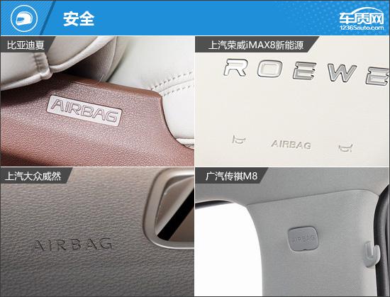 荣威的内部配置 iMAX8 和传祺 M8 旗鼓相当,但重点不同。其中,荣威 iMAX8 其优点是独享副驾驶座后排可调节按钮和后排小桌板,而且座椅的功能设备也比较丰富,可以提供更好的乘坐舒适性。传祺 M8 它是独家驾驶座电动座椅的记忆功能和负离子发生器,在方便性方面略胜一筹。由于比亚迪夏参与的是入门级车型,在舒适性配置上存在明显的缺失,特别是在座椅功能上,与其他三款车型存在一定的差距。