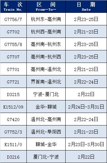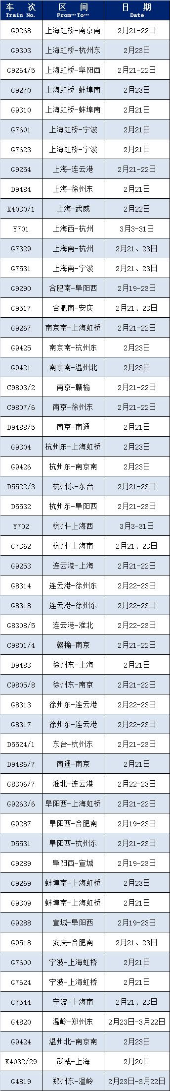 G7531 宁波,上海南部 2 月 21 日、23 日