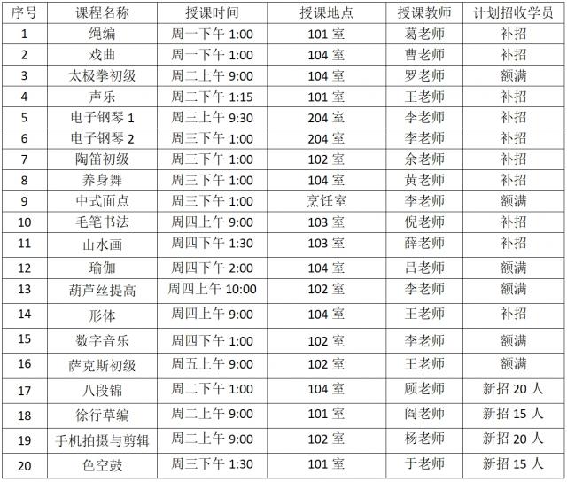 徐行镇社区(老年)学校春季班开始招生