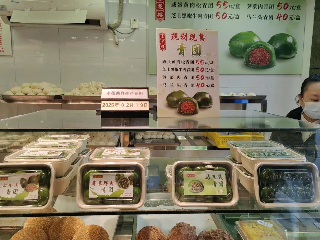 杏花楼除咸蛋黄肉松味外,还推出了荠菜肉、黑胡椒牛肉等多种口味的青团,满足不同消费者的需求。
