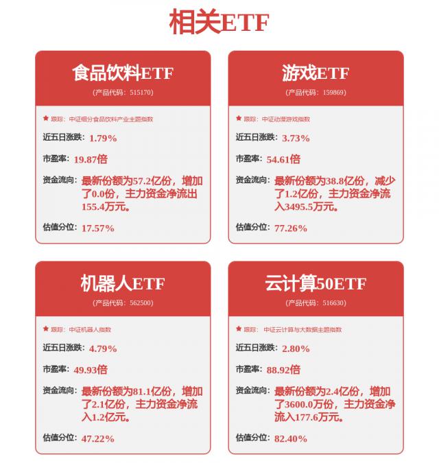 证券之星消息,2 月 19 日,上证综指报收 3351.54,上涨 0.81%;深圳成指报收 10772.65,上涨 1.46%;在工业主题中,机械设备、电子、计算机涨幅居前,煤炭、石油石化、银行领跌。从当天的股票类型来看 ETF 从基金二级市场表现来看,标准普尔中国新经济产业、CSI机器人、CSI机器人产业等指数是跟踪目标。 ETF 其中,银华中证机器人领涨, ETF、南方银华工银东英标普中国新经济 ETF ( QDII ) 、华夏中证机器人 ETF 分别由 7.08%、6.97%、6.9% 涨幅居前三位。以法兰克福 DAX、法国富时沙特阿拉伯, CAC40 等待指数为跟踪目标 ETF 其中华安德国基金领跌, ( DAX ) ETF ( QDII ) 、嘉实德国 DAXETF ( QDII ) 、东英沙特,华泰柏瑞南部 ETF 分别由 -2.53%、-2.11%、-1.33% 跌幅居前三。