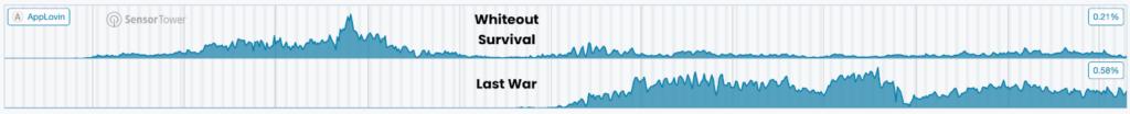 (《无尽的冬天》和《Last War》对比AppLovin上的声量趋势)