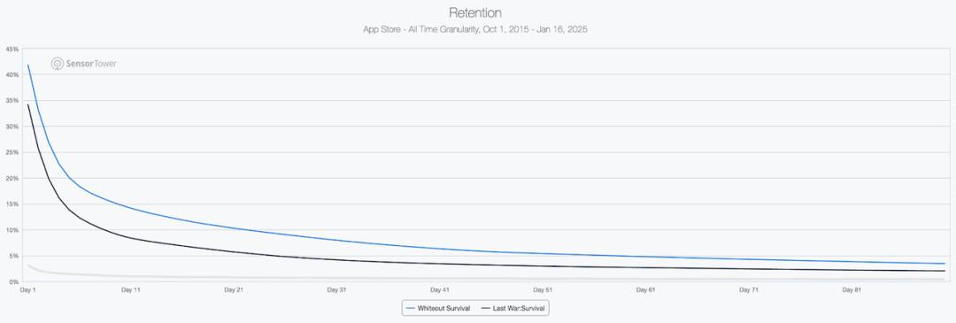 然而,《Last War》《无尽冬日》在留存率方面落后。