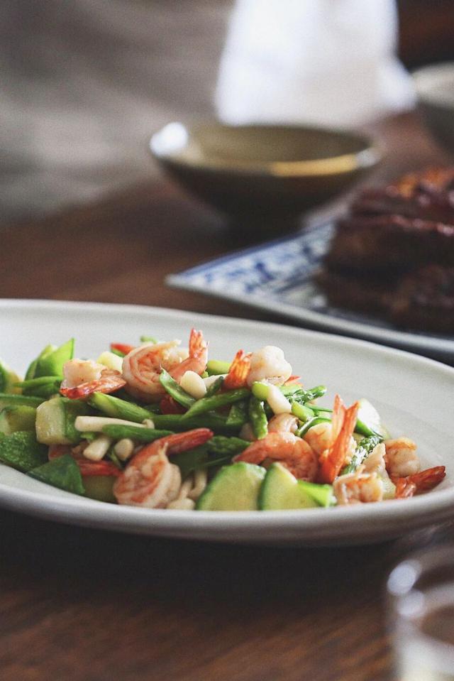 还可以买一些虾仁,米酒腌制 10 再拿一个鸡蛋,炒熟备用。最后姜片爆香,炒虾至变色,加韭菜、鸡蛋炒,盐调味。