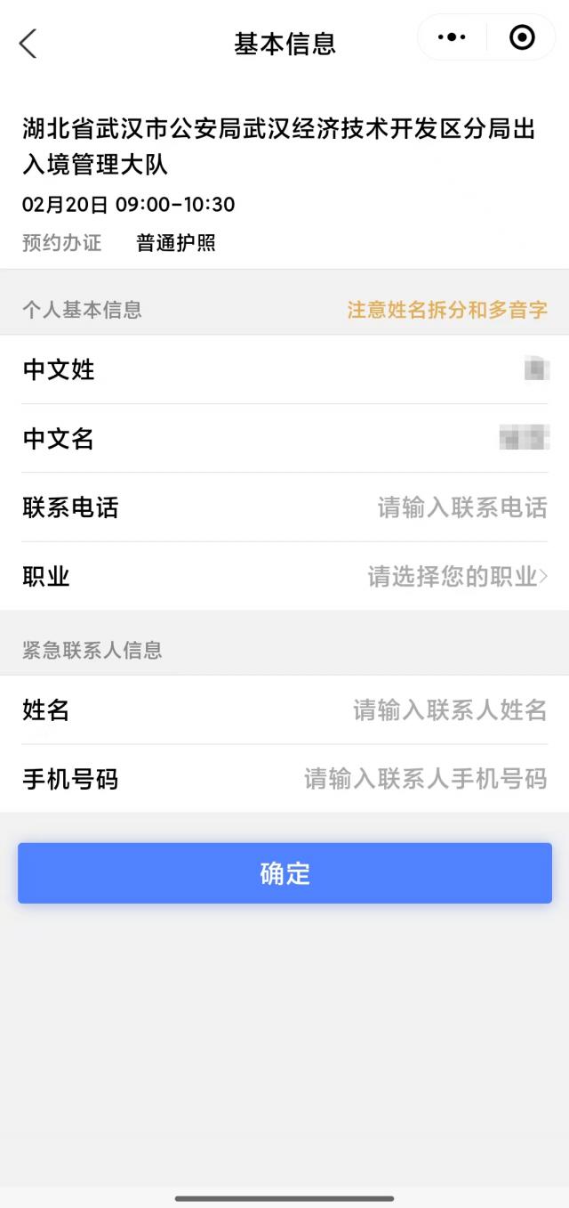 5、填写自己的姓名、姓名、联系方式、职业、紧急联系人等信息,填写完毕后点击“确定”;接着选择取证方式,可以选择邮政快递或者到公安机关自提;