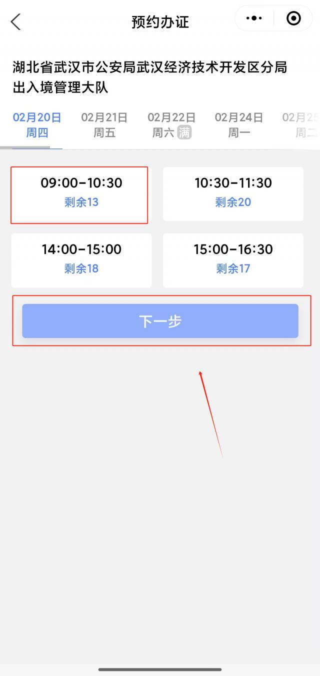 3、结合实际情况,选择预约处理区域和处理网点;选择处理网点后,会显示网点的余号信息,可以根据余号时间段和自身情况选择处理时间,然后点击【下一步】;