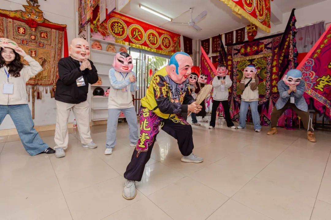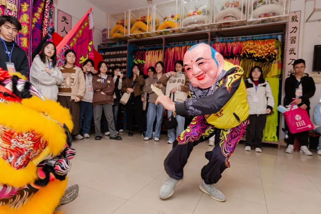 现场,舞动狮子协会吴润明和传统大头佛的表演招数传承人区健雄亲自授课,学生们纷纷“向老师学习”,都变成了“大头佛”,像样“跳舞”!