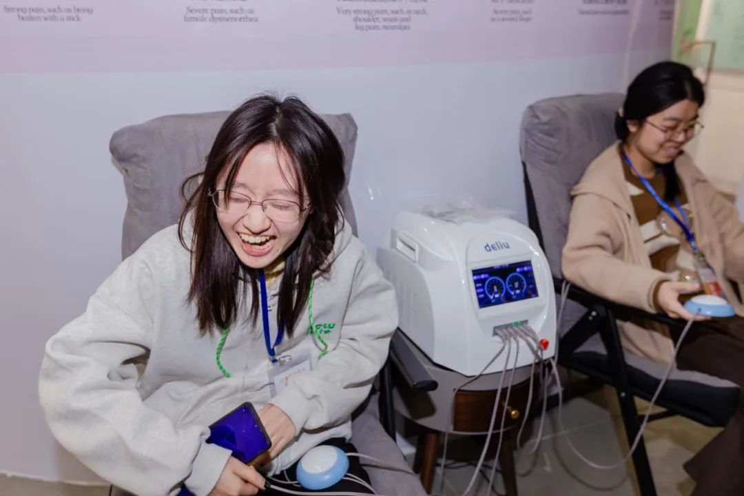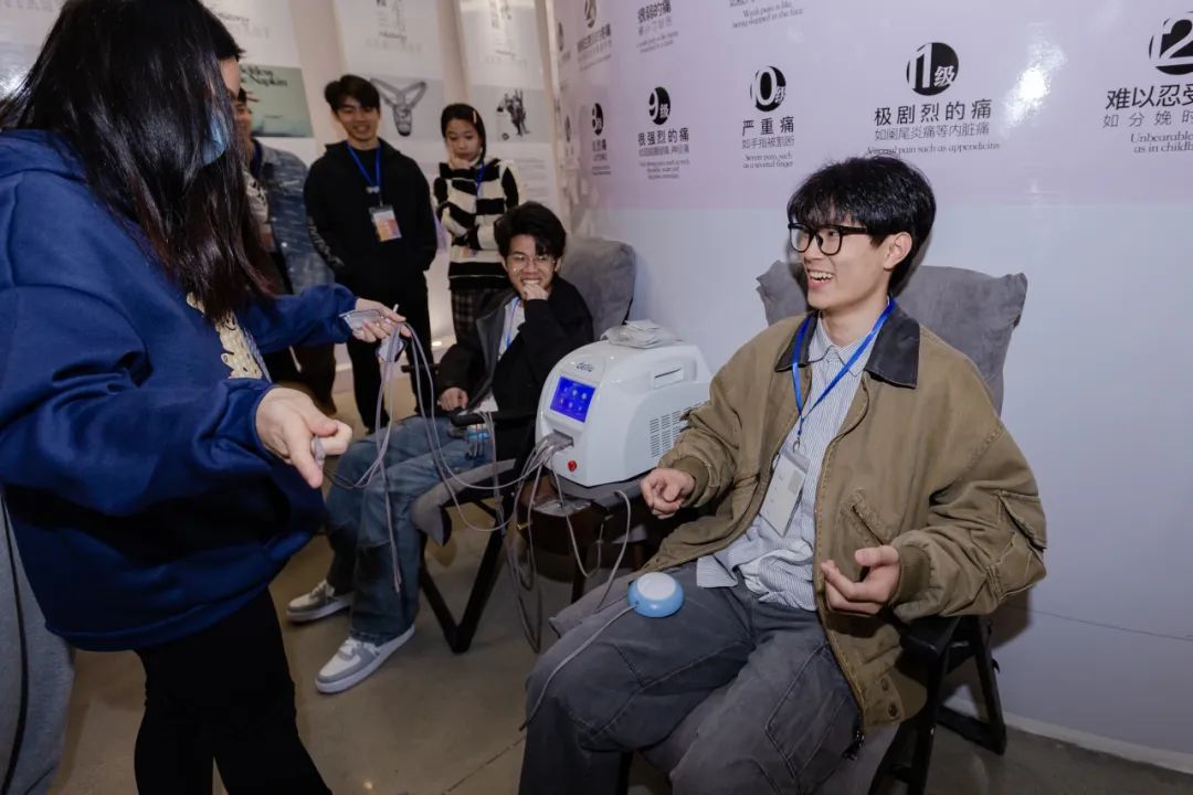 同学们在痛经和分娩疼痛体验区传来阵阵惊呼——“好痛!”