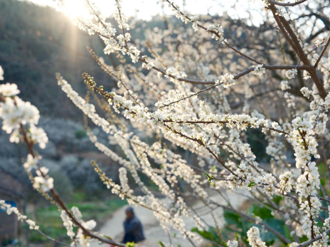 二月八日,江西龙南、南亨乡西村村千亩三华李花竞相开放,就像冬天失去枝头的细小雪花,吸引众多游客前来踏青赏花。