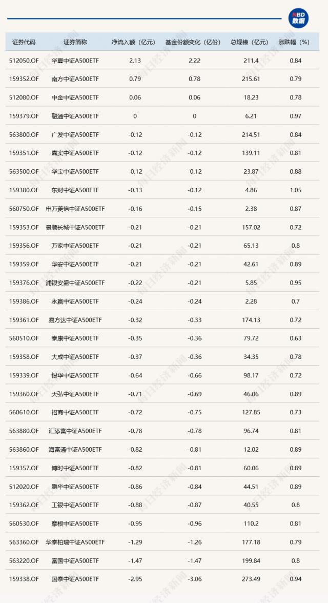 另外,当天的场内 29 只中证 A500ETF 合计净流出 12.69 其中有亿元 3 只有资金加持才能得到。
