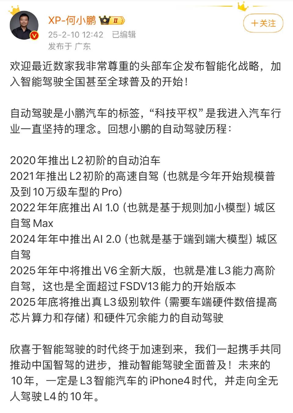 何小鹏在微博上贴上了卫智驾驶的标签。
