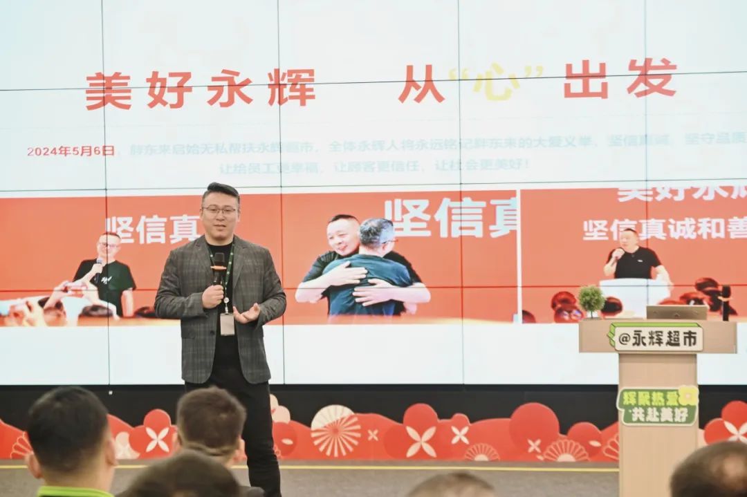 他说:“店长应该成为店内真正的主人,我们希望通过系统、规范的培训,让店长有效地掌握调整店面的核心能力。目前,改变重点不仅要提高效率,还要在各个城市打造具有示范功能的标杆,改变门店,牢记改变初衷,积极实践和传播美,服务好客户,照顾好员工,让门店回归健康经营状态。在培训会上,永辉超市CEO李松峰在“对话”阶段强调。