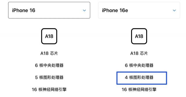 芯片也是苹果一直喜欢缩水的地方,iPhone 16e 当然也不例外。虽然搭载的是 A18 但是与芯片相比 iPhone 16 上的少了一个 GPU 核心。