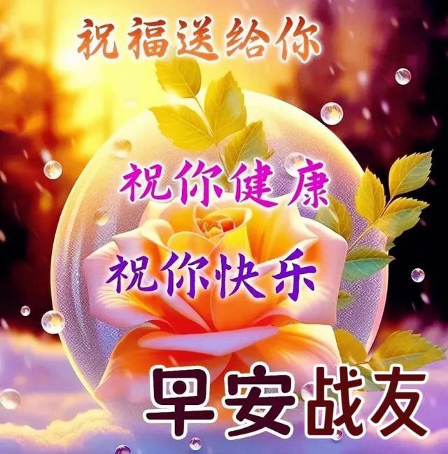 早上好,轻风轻拂祝你好运,祝你心情愉快,飞翔愉快。快乐陪伴你度过一天,快乐陪伴你。打开心情的新篇章,快乐每天不打折!早上好,快乐的愿望!早上好,亲爱的老战友!