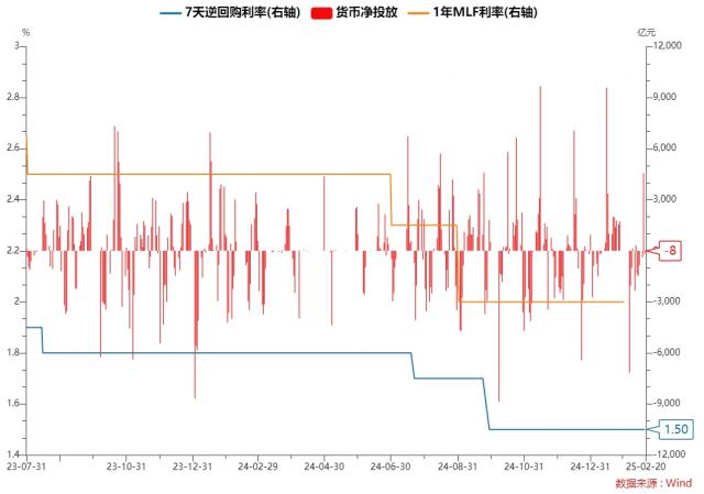 央行 2 月 20 日以固定利率、数量招标方式进行 1250 亿元 7 天期逆回购操作,操作利率 1.50%。Wind 数据显示,当天 1258 逆回购到期1亿元,由此计算,单日净回笼 8 亿元。
