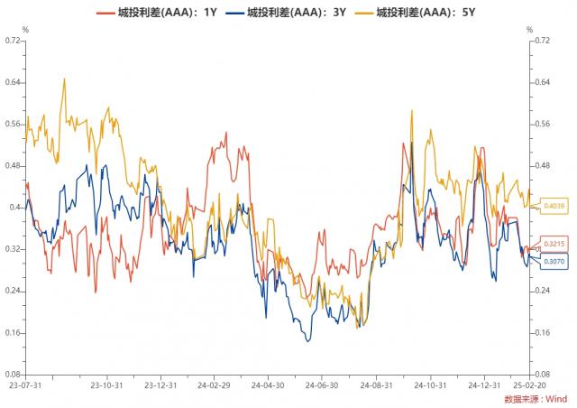 5. 最近城投债(AAA)每个期限的利差走势和数据