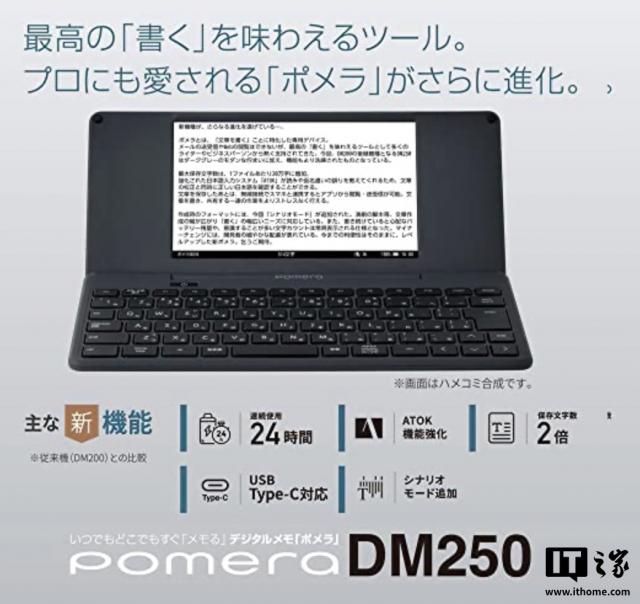 IT 世家 2 月 21 日本文具制造商日新闻 King Jim 宣布为旗下 Pomera DM250 “便携式数字打字机”推出全球版(日本版) 2022 2008年发布),该机整体类似于以前的文曲星等电子学习机,仅适用于打字和简单管理资料,定价为 499 美元(目前的约定) 3634 首发价格为人民币) 349 美金(IT 家族备注:目前的约定 2542 元人民币)。