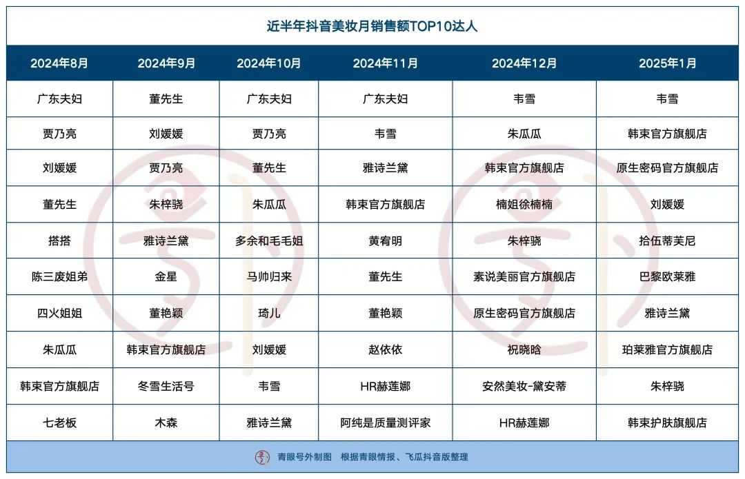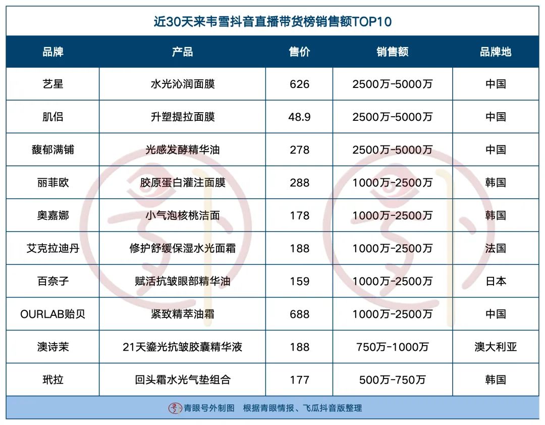 根据青眼情报数据显示,早在去年12月,韦雪就超过1亿元。 GMV带货位居美妆类第一,被提升为抖音美妆“一姐”,并于今年1月位居榜首。