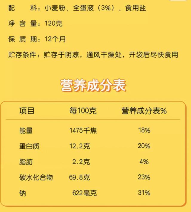 例如下面这个加了 3% 全蛋液鸡蛋面,蛋白质含量略高于普通面条,口感也更浓。