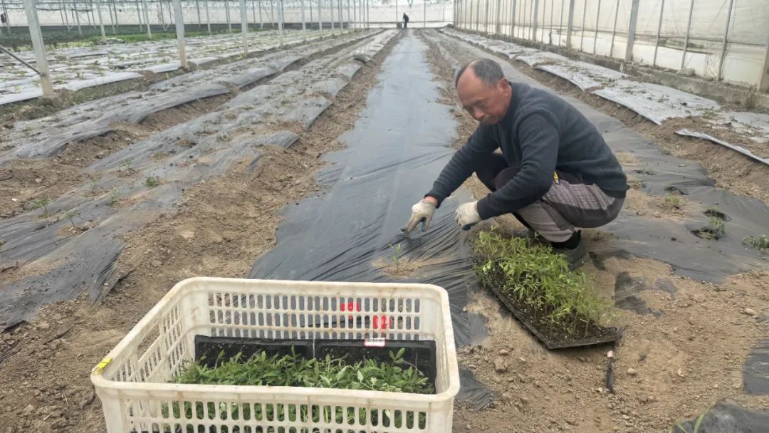 走进养土完成的温室,工作人员开始开始垄断和播种。他们先用铲子平整土地,然后共同支持播种机。随着机器的缓慢运行,杭州白菜种子均匀种植。为了保证每株杭州白菜的生长间隔合适,工作人员精心控制间隔约14厘米,以获得最佳的生长性能和产量。